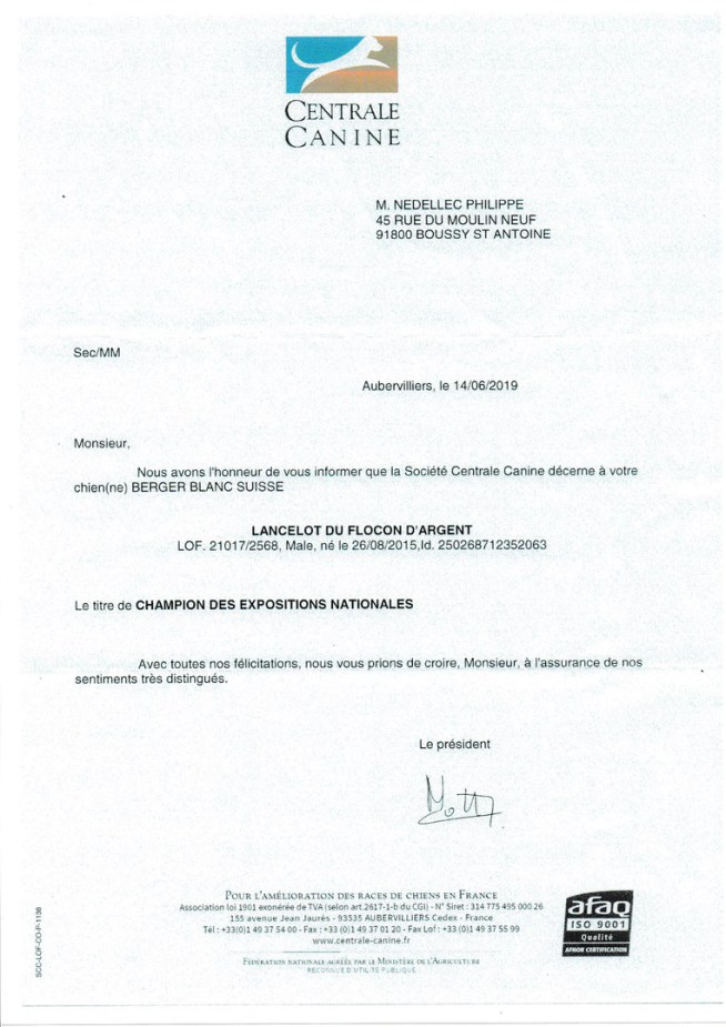 Nom de la mère | : | Fly du jardin des lys blancs |