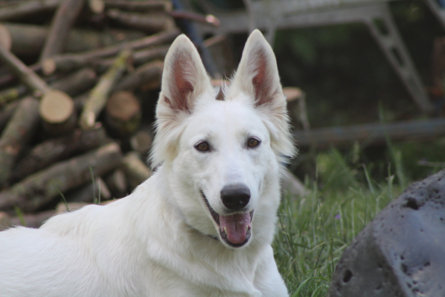 femelle à poil long, bon gabarit, sociable avec